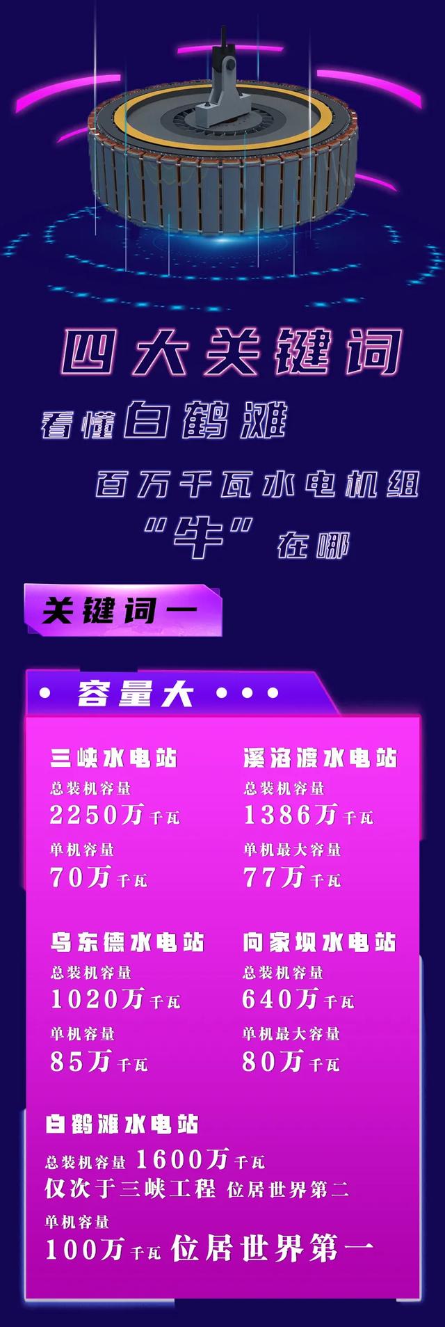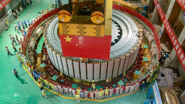 白鹤滩水电站装机总容量1600万千瓦,左右岸分别布置8台单机容量为100万千瓦的水轮发电机组,单机容量位居世界第一,将于2021年7月实现首批机组投产发电,2022年7月实现全部机组投产发电。首台机组转子的顺利吊装是白鹤滩水电站机组安装的重要里程碑,标志着中国水电人攀登百万千瓦机组这一世界水电“珠峰”已进入最后冲刺阶段。