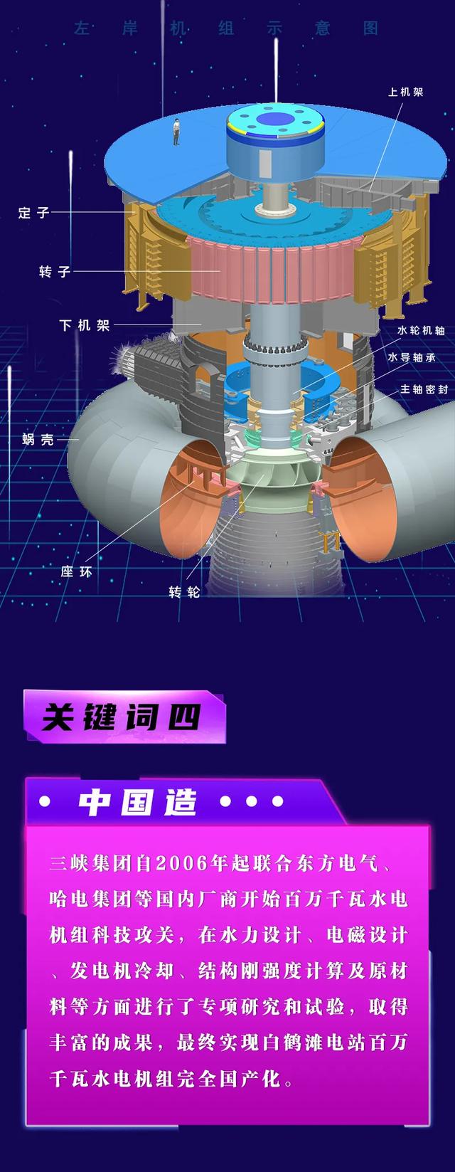 “三峡集团携手国内设计院、水电装备制造厂商及水电施工企业在百万千瓦机组设计、研发、施工中,进行了大量的自主创新,形成了一系列具有自主知识产权的核心技术。”三峡机电公司现场负责人表示,“我们将认真学习贯彻落实习近平总书记对金沙江乌东德水电站首批机组投产发电重要指示精神,按期实现白鹤滩水电站百万千瓦机组投产发电目标。”