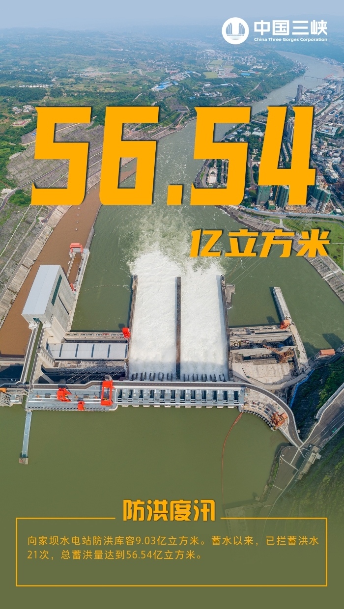 截至目前,向家坝水电站已拦蓄洪水21次,总蓄洪量达到56.54亿立方米,极大地提升了沿江城市的防洪能力,护卫了长江安澜。
