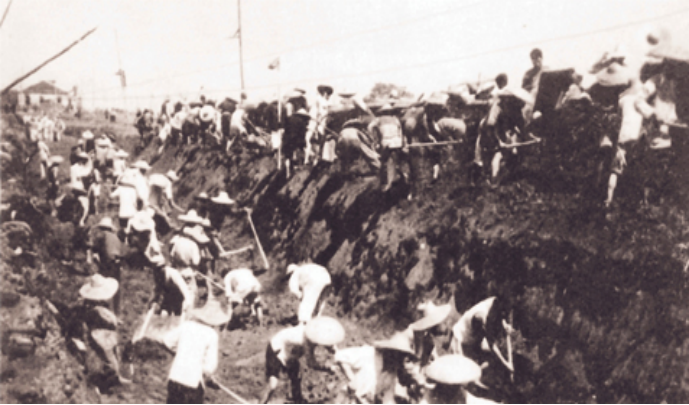 ▲20世纪50年代初,荆州人民进行填土加固荆江大堤会战的场景 图片来源:中国档案报