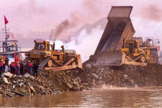 ▲ 1997年,随着最后一车石料倾入江中,三峡工程胜利实现大江截流 (资料图片)