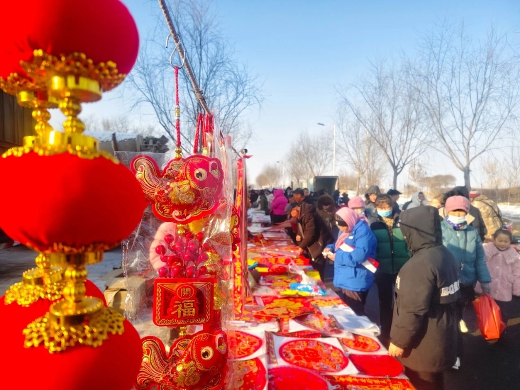 本网讯(徐强)春节期间,吉林省大安市大岗子镇的集市上张灯结彩,人头攒动。大红灯笼映红了人们的笑脸,冻货、年画、春联摆满街头,处处透着春节的热闹劲儿。