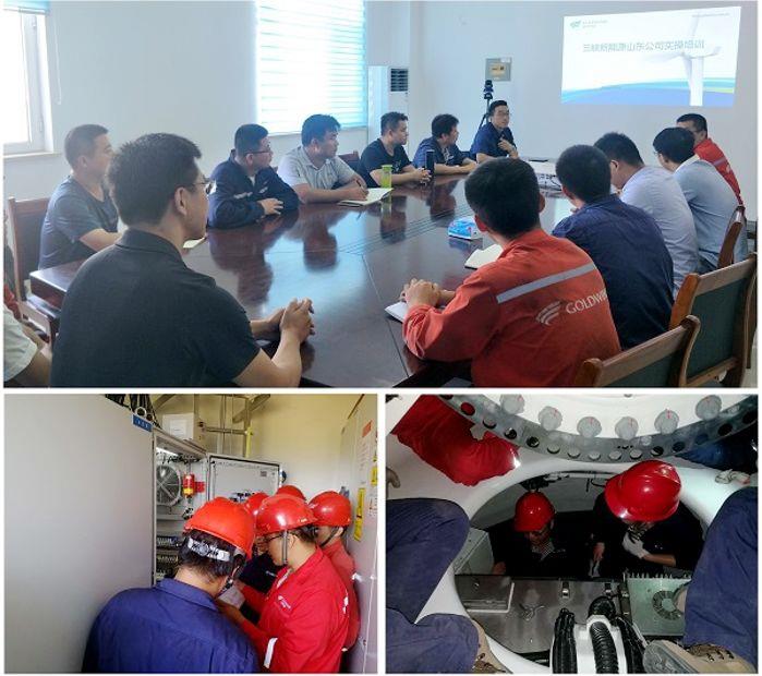 在临朐风电项目进行了为期3天的实操培训,参训人员身处故障风机,讲师按照系统分类对照实物进行讲解,演示调试软件使用、风机维护常用操作等,并设置故障点让参训人员进行故障排除实操。
