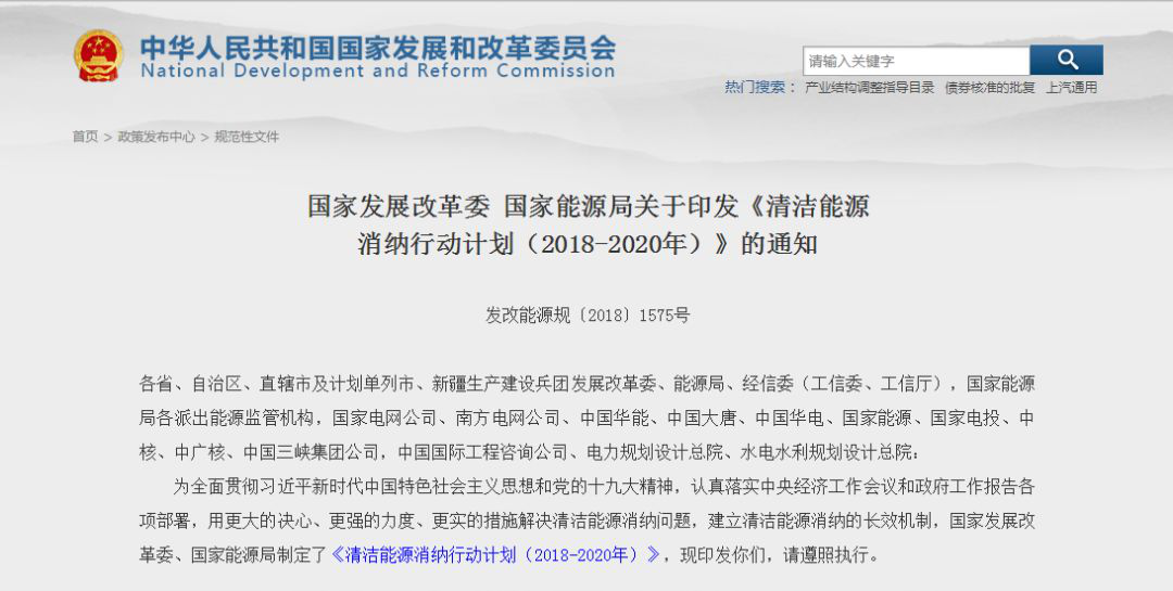 国家发展改革委12月4日在其官网公布与国家能源局共同制定的《清洁能源消纳行动计划(2018—2020年)》,提出到2020年基本解决清洁能源消纳问题。