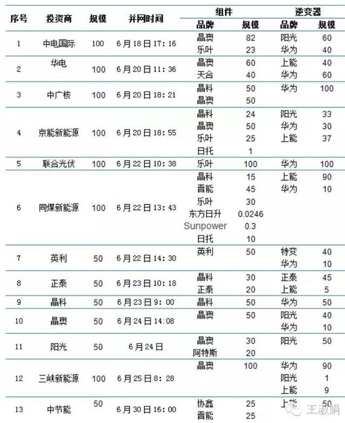 第一批领跑者项目,组件和逆变器的应用情况如表3所示。