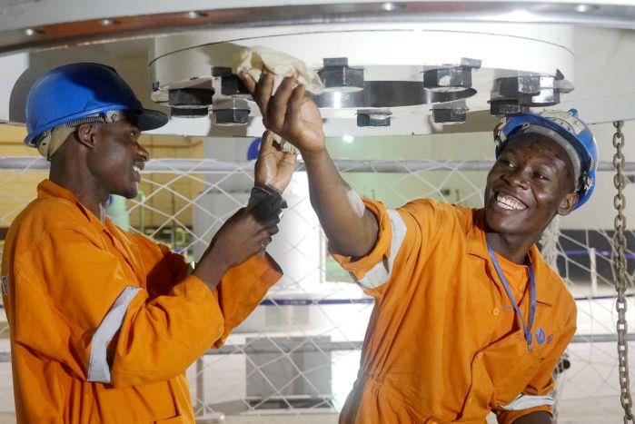 在伊辛巴水电站工作的当地工人