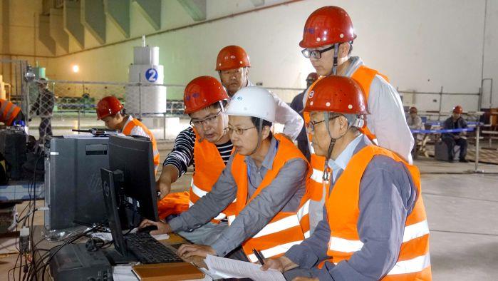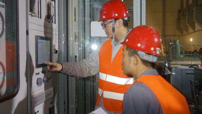 在1号机有水调试现场,“编队出海”的伊辛巴水电站中方建设人员正在专心工作。