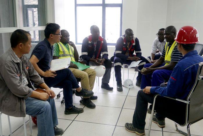 中方建设人员正在专心工作。