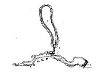 水道系统 进水口布置在上水库的东岸,其后设6条长730m的钢筋混凝土压力管道,管道内径7.5m。