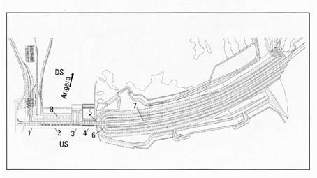 大坝 由土石坝和混凝土重力坝组成,挡水前沿总长2690m。土石坝长1861.3m,最大坝高87m,采用沥青心墙;混凝土重力坝长828.7m,最大坝高96m。