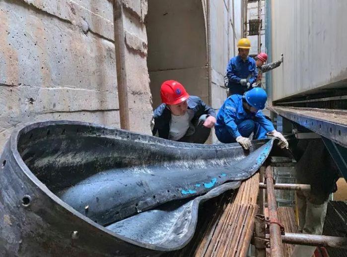 三峡升船机能安全平稳运行,与通航管理人员的精心运行和维护密不可分。图为检修期间,检修人员正在更换止水部件。(流域枢纽管理局供图)