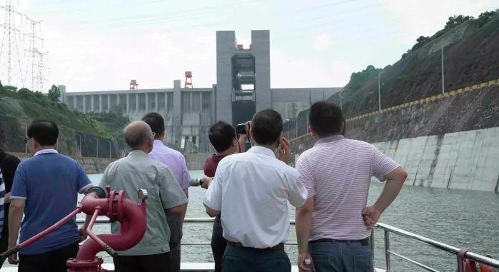2019年8月,张超然、郑守仁等院士专家考察三峡工程时,乘船查看了三峡升船机试通航情况。 摄影:朱静霞
