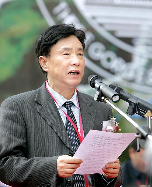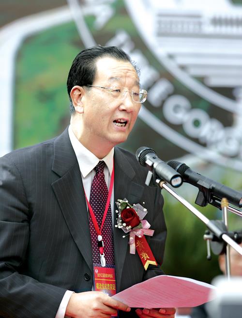 云南省省长顾问邹纲仁代表云南省政府在截流仪式上讲话。 本报记者 孙荣刚 摄