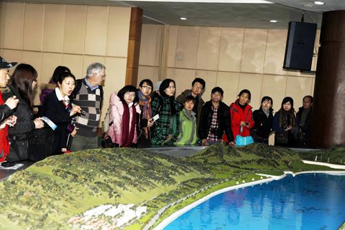 | 3月23日下午,“气候变化绿色之旅”媒体考察团参观三峡工程模型。(刘华 摄) |