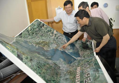 | 湖北省气象局向中国三峡集团赠送三峡卫星遥感图。(张爱忠 摄) |