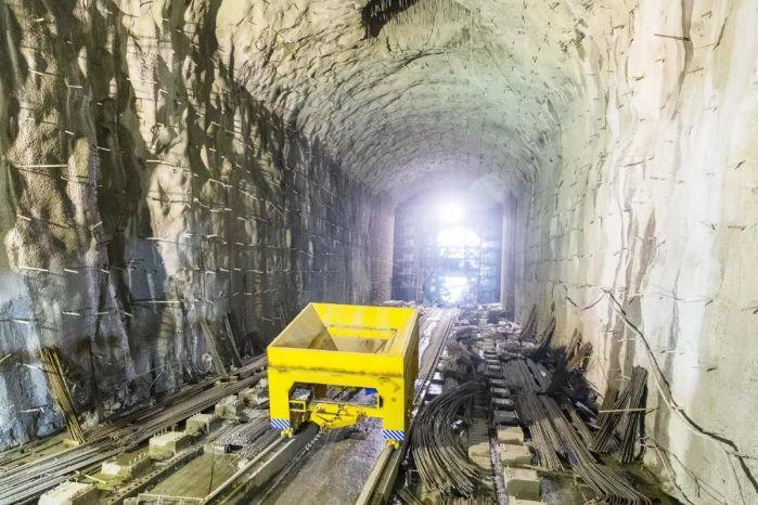 为了解决这一难题,活跃在泄洪洞工程的“党员先锋号”和“党员攻关小组”行动起来。经过严谨的研究和设计,大坡度重载自动化运料系统诞生了。该系统由主卷扬、牵引线、运料小车、控制系统及辅助系统组成,是国内首次攻克如此大坡度下常态混凝土运输的难题,创新性地实现了大坡度重载条件下混凝土料自动化运输。