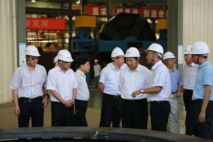 卢纯一行深入车间参观了金海新能源在业界占据领先地位的拳头产品——反向平衡法兰和预应力锚栓基础的生产过程,并向一线技术人员详细了解了产品特性和技术优势。据了解,上述产品具有节材降耗、维护成本低、供货周期短等特点,可以显著提高风机设备的运行安全性,且价格仅为国外同类产品的50%,在市场上供不应求。依托产品优势,金海新能源于2015年5月在中小企业板挂牌上市,截至目前,三峡新能源获得的股息红利已远超出资额。
