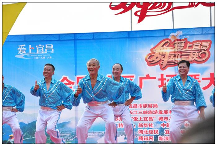 本网讯(韩伶娟/文 汪正洋/图 报道)8月28日下午,三峡坝区截流纪念园生态演艺广场人潮涌动,歌舞飞扬,动听的音乐,绚丽的服装、欢快的舞步,让三峡大坝旅游区顿时成了欢乐的海洋。“爱上宜昌•舞动三峡”全国社区广场舞大赛决赛在这里隆重举行,700名来自全国各地的广场舞爱好者在宜昌地标式建筑——三峡大坝前会师,以舞会友,同场竞技,上演舞林争“坝“大戏。