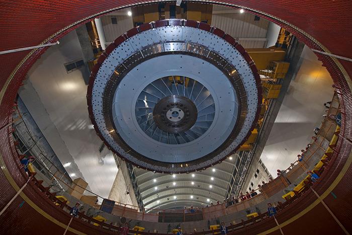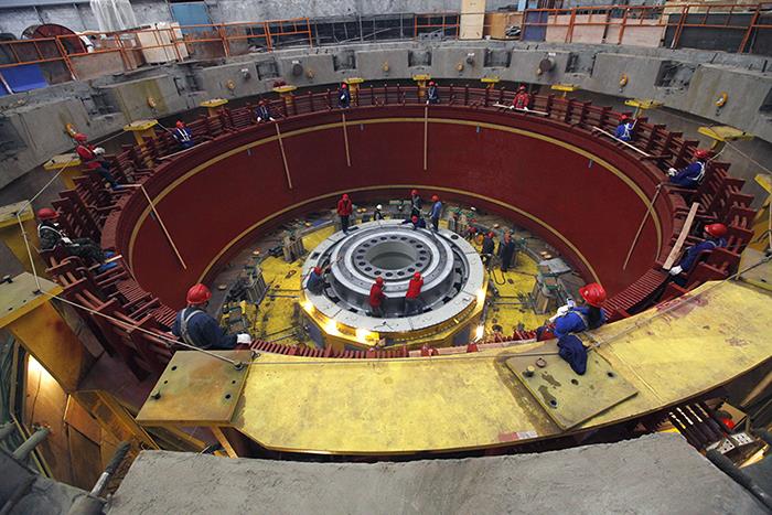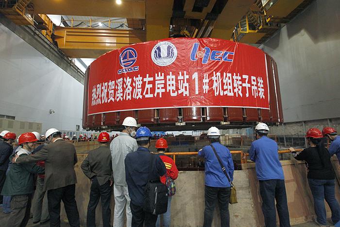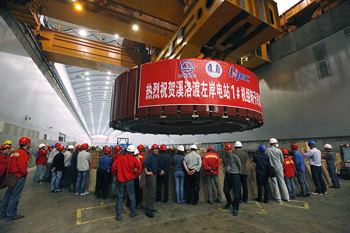 | 溪洛渡水电站左岸1号机组转子吊装基坑现场。陈涛 摄 |