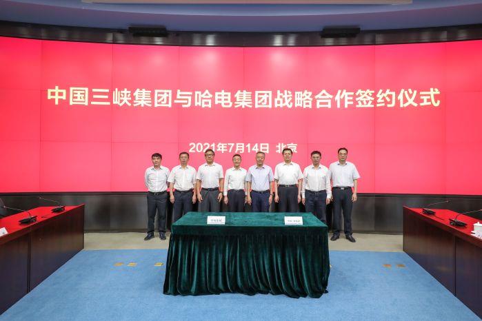 本网讯(雷海超)7月14日,三峡集团党组书记、董事长雷鸣山,总经理、党组副书记韩君在京与哈尔滨电气集团有限公司(以下简称“哈电集团”)党委书记、董事长斯泽夫,总经理、党委副书记吴伟章举行座谈,双方就共同贯彻落实习近平总书记对金沙江白鹤滩水电站首批机组投产发电的贺信和李克强总理批示精神,进一步深化在水电、新能源、国际业务等方面合作进行深入交流。座谈后,韩君、吴伟章代表三峡集团和哈电集团签署战略合作协议。