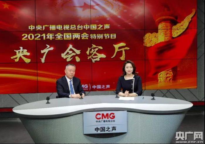 ▲ 中国三峡集团党组书记、董事长雷鸣山(左)和总台央广中国之声主持人婉莹(右)