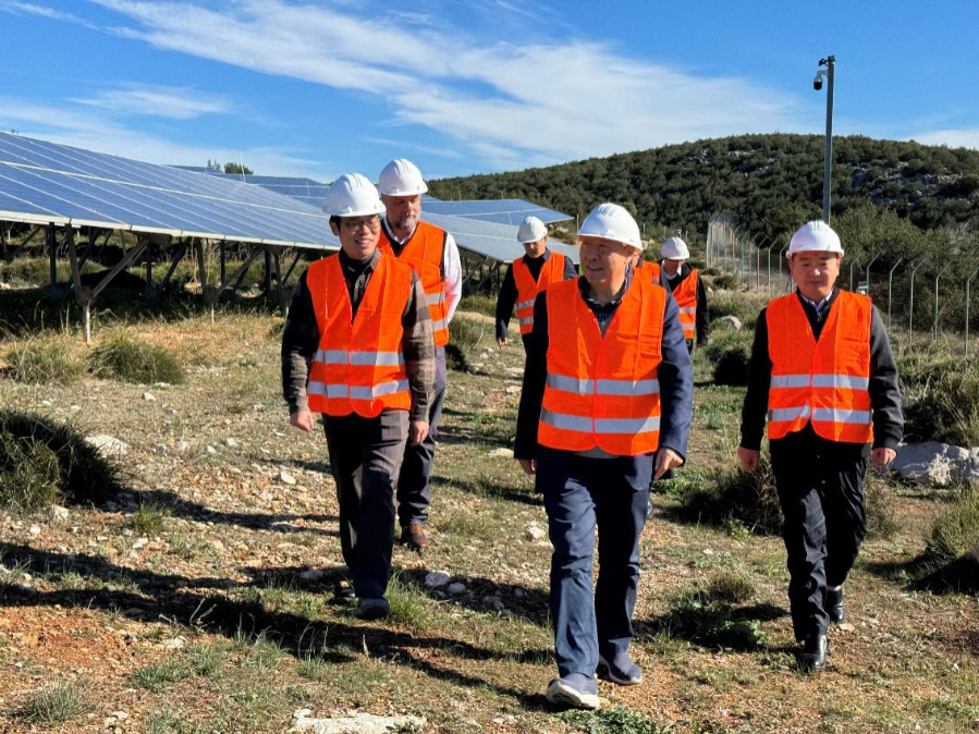 调研期间,雷鸣山一行来到希腊南部比格瑞斯(BIGIAREZA)光伏电站项目现场,先后察看了电站控制室及电站安全监控系统等,调研了设备运行及投后管理情况,实地检查安全生产情况,并看望三峡集团在希腊员工,了解职工生产、生活情况,就企业管理与文化融合听取职工意见和建议。
