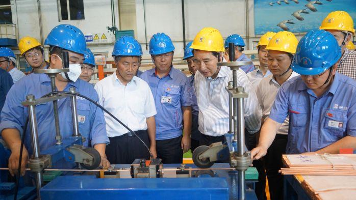 9日下午,卢纯一行与东方电气集团董事长、党组书记邹磊,总经理、党组副书记张晓仑一起,冒着暑热的天气,实地考察了东方电机中型电机分公司、生产车间和科研试验现场,参观了东方电机展示厅,现场察看了白鹤滩大型部件——2号机座环加工情况,与东方电机焊工师傅和三峡发展驻厂监造代表亲切交流。