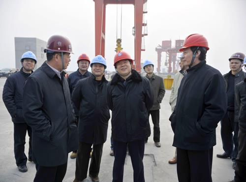 | 陈飞总经理一行实地检查部署春节期间三峡工程建设与枢纽运行工作安排。(张爱忠 摄) |