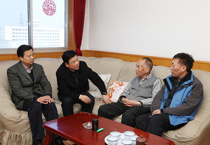 1月20日,陈飞(左二)、于文星(右一)、张诚(左一)一行在老同志王梅地家中看望慰问。孙荣刚 摄 |