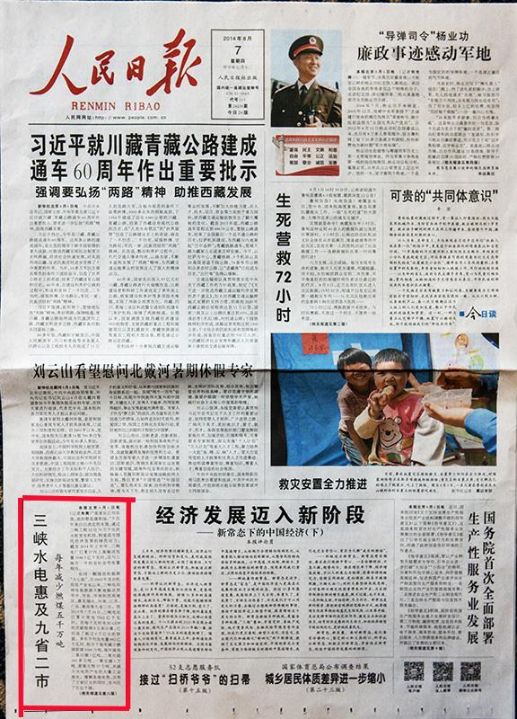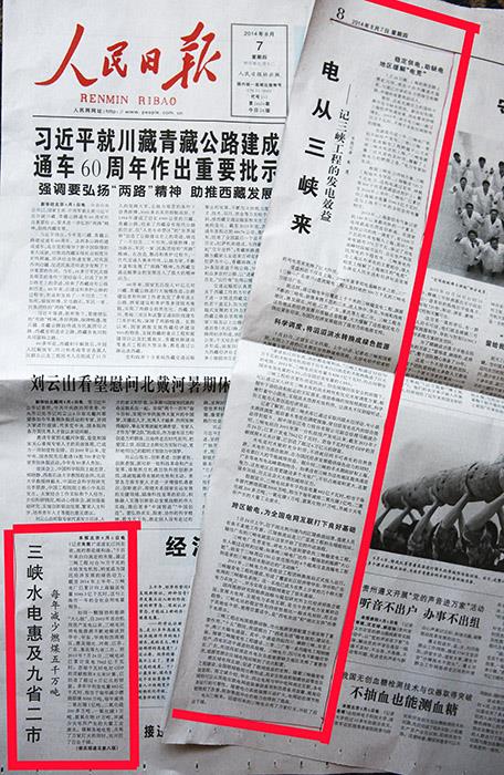 《人民日报》8月7日头版刊发《三峡水电惠及九省二市》新闻报道。常征 摄影