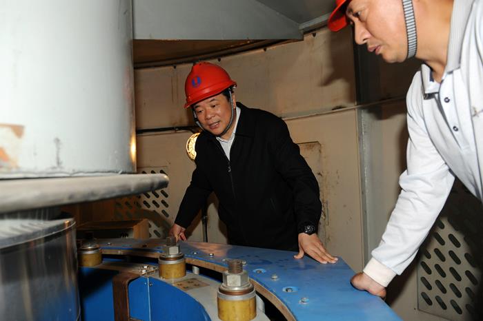 | 陈飞检查电站8号机组安装情况。(高峰 摄) |
