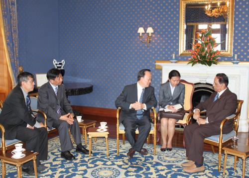 | 中国三峡集团顾问李永安(左三)、副总经理杨春锦(左二)拜会毛里求斯第一副总理艾哈迈德•拉希德•比比琼(右三)。 |