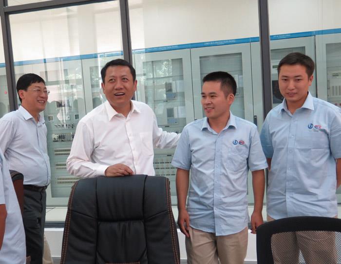 在发电厂房及中控室,王琳与当值员工一一握手,得知他们中有几位是老挝籍,王琳亲切询问他们,是否适应电厂的工作和生活,感谢他们为电站投产发电所作的努力,勉励他们再接再厉创造更大的成绩。随后,王琳在项目部主坝营地与参建各方召开座谈会,听取了工程建设运行情况汇报。他指出,南椰2电站项目已于昨天收入商业运行,这是项目参建各方在这个艰苦而特殊的环境下,以特殊的方式向共和国66岁华诞的献礼。目前,工程建设已经取得阶段性胜利,希望参建各方,积极重视有益建议,以慎终如始的态度做好尾工建设和工程消缺工作。