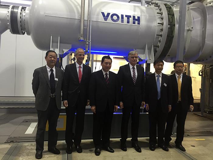 卢纯一行在福伊特总部水轮发电机组实验室与福伊特总裁林哈德合影留念
