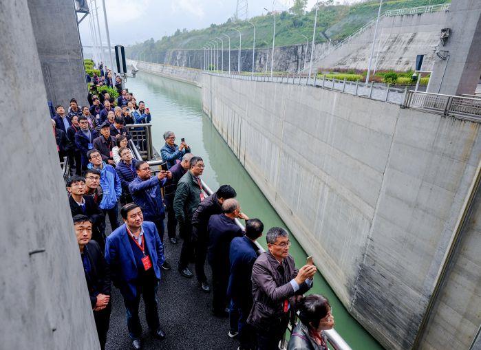 与会的院士专家们实地考察三峡升船机。