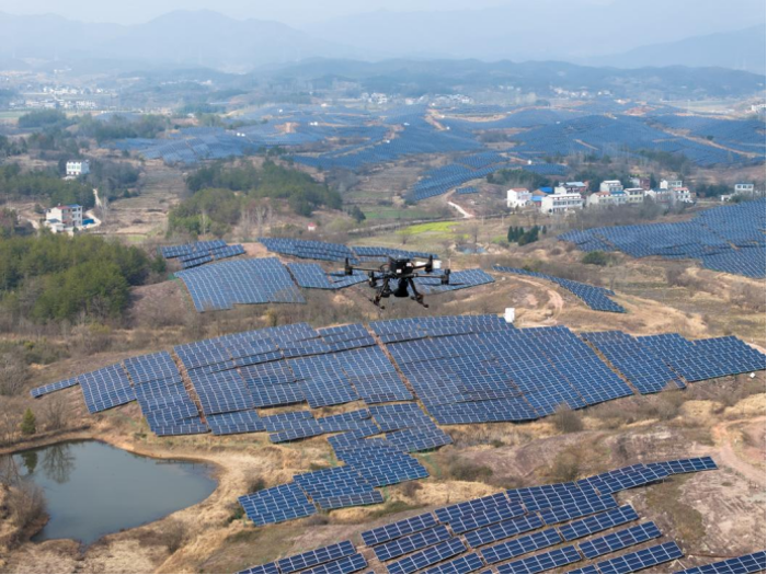 阎家河光伏电站位于湖北省麻城市阎家河镇,装机容量10万千瓦,由32万块光伏板组成,分布在周边3500亩丘陵山坡上。以前需要4人一组、40天左右才能把整个光伏区巡检一遍,而现在只需要1台无人机、7天时间就可以完成一轮巡检。