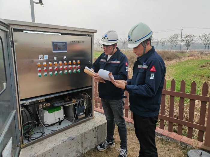 “据现场查看,这个问题属于电源故障,现已解决。”在园农村一体化处理设备站点,长江环保集团长三角分公司六合项目现场工作人员陈正雷与同事根据手机APP发送的警报信息,来到现场查看情况。