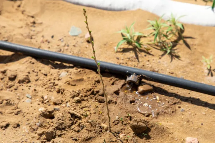 “林光互补”区的光伏板下和板间,一条条黑色的滴灌带就像“毛细血管”均匀铺开,这些灌溉水是经过超滤、反渗透等处理后的煤矿疏干水,实现了水资源的“变废为宝”。在涓涓细流的滋润下,不久前种下的柠条、沙柳和杨柴,根部深入地下80公分的湿沙层,细枝上已长出片片嫩绿新芽。