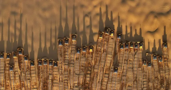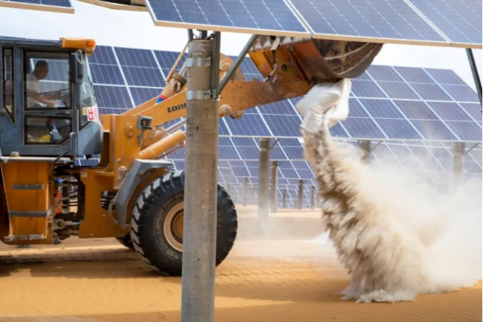 如今,在库布其基地项目一期向西60公里,后续工程场平施工已经如火如荼,机器轰鸣、往来穿梭。随着这片“印记”越来越向沙漠腹地延伸,这片茫茫沙海,将变成蓝色的光伏海洋和更加广阔的绿色天地。