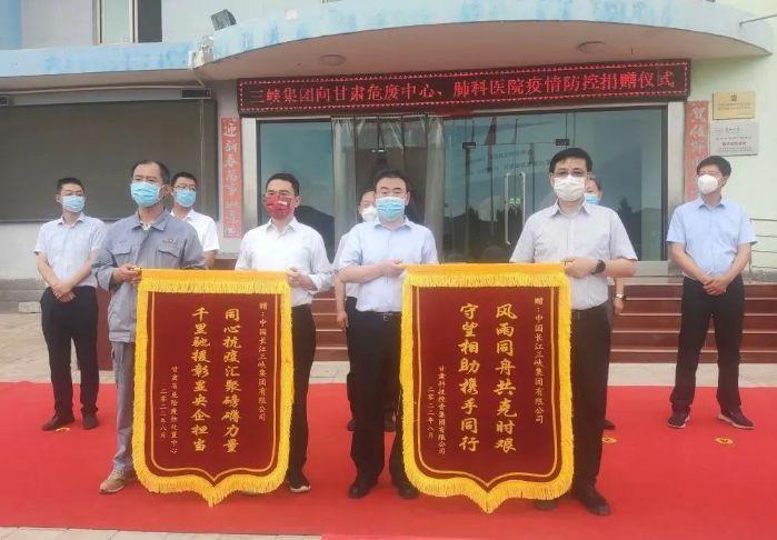 捐赠仪式上,甘肃省慈善总会向三峡集团颁发了荣誉证书,甘肃省国资委向三峡集团致感谢信,受赠方向三峡集团致感谢词并送锦旗。