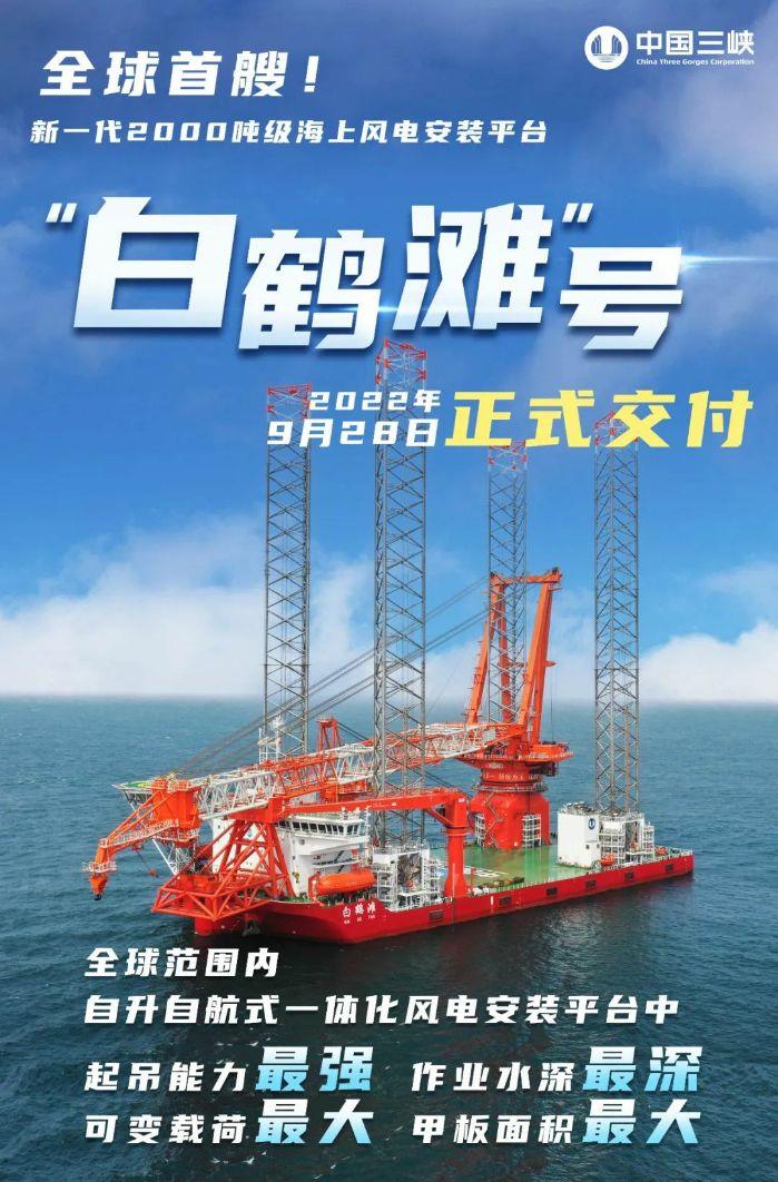 本网讯(程林 徐强)9月28日,由三峡集团投资建造的全球首艘新一代2000吨级海上风电安装平台——“白鹤滩”号在广州南沙正式交付投运。