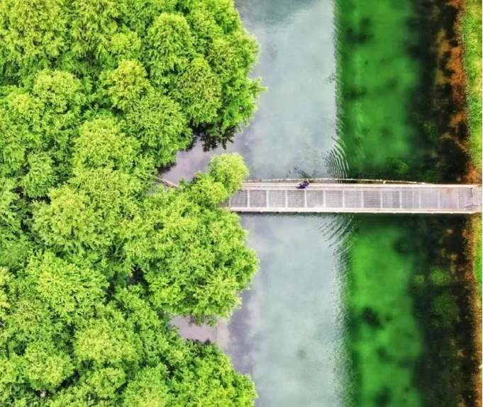 看安徽芜湖,长江大桥下滩涂荒地被打造成人工湿地公园,公园里层林尽染,水鸟嬉戏,美不胜收。“水藻+食藻虫+鱼虾+水鸟”形成食物链生态系统,辅以人工曝气,达到了在园区内实现污水生态净化的效果,与不远处的朱家桥污水处理厂共同构建起绿色循环的生态体系。