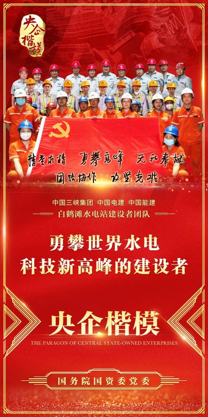 “央企楷模”评委会给予白鹤滩水电站建设者团队的颁奖词中说:“大国重器,雄伟壮丽!你们披星戴月开山筑坝,建设世界最大清洁能源走廊;超级工程,辉煌无限!你们十年一日筚路蓝缕,打通‘西电东送’,点亮万家灯火。鹤舞金沙,奔腾翱翔!你们秉持大国工匠的奉献,勇攀世界水电科技新高峰,创造六项世界第一,让中国水电名片再次闪耀全球!”