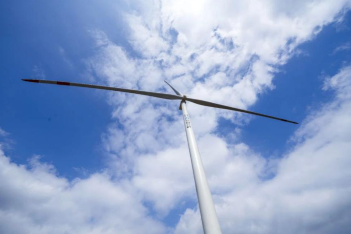 西南的群山之巅,一排排宛如“巨人手臂”的山地风电机组叶片在风中舞蹈,国内单机容量最大的山地风电场——三峡能源云南弥勒西风电项目已全容量并网发电,强劲的山谷之风带动风电机组,带来年均14多亿千瓦时的绿色电能,为当地绿色可持续发展、推动能源结构转型赋能领航。
