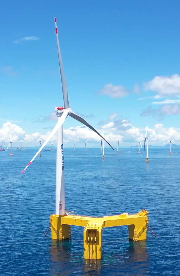 2021年7月23日,我国首个漂浮式海上风电平台,搭载全球首台抗台风型漂浮式海上风电机组,组成“三峡引领号”,在广东阳江海上风电场顺利安装。