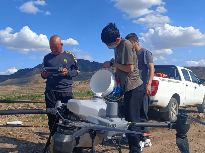 ▲ 马国民(左一)正在联系农用无人机操作