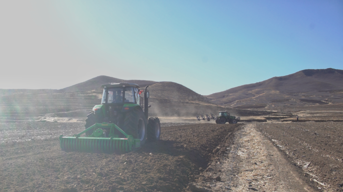 今年春耕前,农机服务公司使用捡石机,把康国安租种的山坡地里的石头全部捡了一遍。“村子里有自己的农业机械,用起来放心、踏实。今年春耕犁地、耙地用的也都是村里的机器。”康国安说。