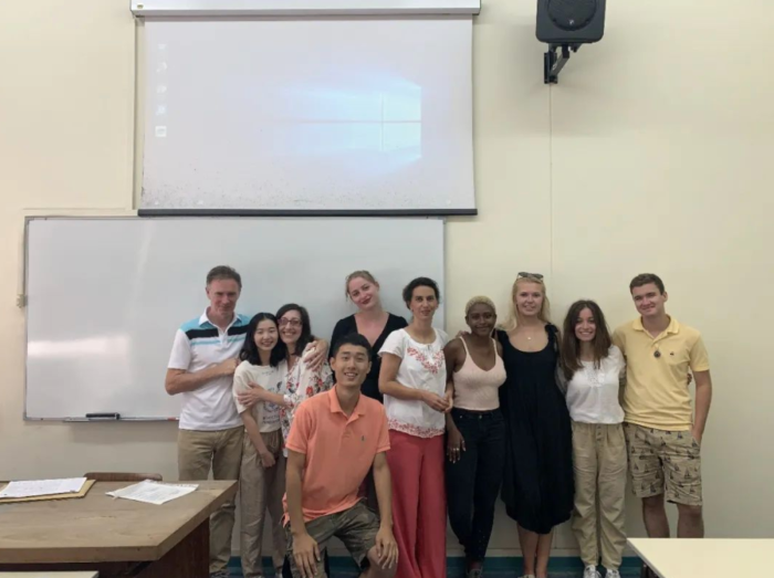 ▲ 刘知航(前一)与班级同学及老师结课合影