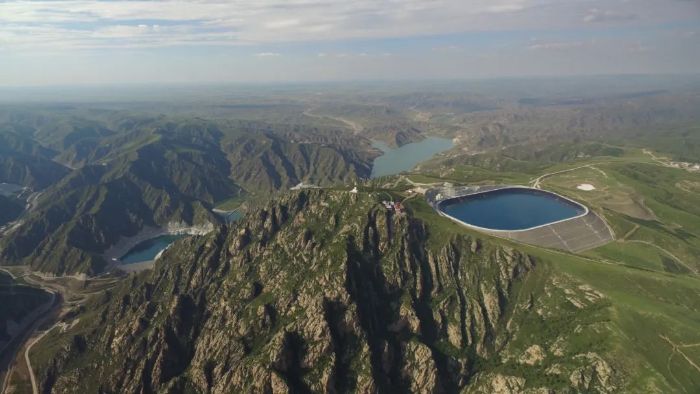 ▲内蒙古呼和浩特抽水蓄能电站上下水库全景