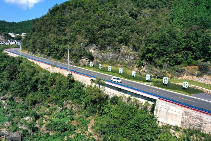 G348三峡公路尊重鬼斧神工的自然基底和秀丽的山形水势,坚持“公路为线、风景为面、桥梁为点、氛围为意”,突出“桥有型、树有景、路有质、史有存、触有感、探有奇、游有味”文化塑造。建设过程中,邀请中国地质局、中国地质大学专家教授对沿线黄陵花岗岩、莲沱组砂岩、石板滩生物群等99处地质遗迹标本采样鉴定后进行标识,所有标本扫码即可获得中英文解说。